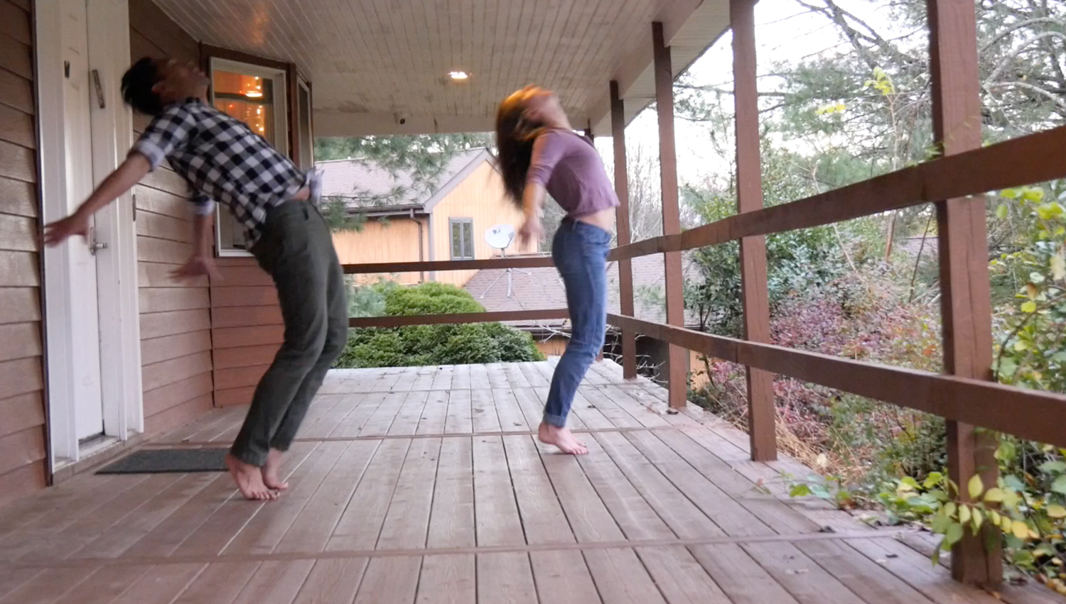 Sarah: It was a huge challenge creating in a pandemic when the rules and guidelines were continually shifting. I originally wanted to make the piece with all of us onstage together, when it became clear that wasn’t possible, we found new ways to use the spaces available to us. The footage of Justin and Campbell is from the house in Effort, PA where we lived during the filming of Heroes of the Fourth Turning. Anthony’s footage is from his time in Virginia filming Fat Ham. My video footage was captured in my South Philly basement, and my audio was recorded in Michael Kiley’s basement studio right around the corner! You learn the lesson over and over but it always feels like the first time… challenge is opportunity.