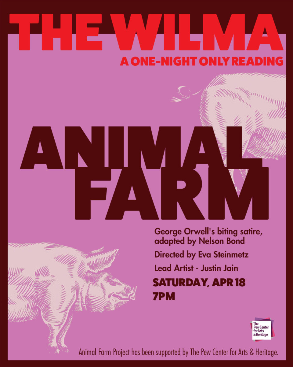 A staged reading of Nelson Bond’s adaptation of Animal Farm, which will explore thematic and staging concepts that will be used in the Wilma’s spring 2027 Animal Farm Project production. Building on the Wilma Theater’s 1979 staging of Animal Farm, this new production will explore devised theater, text, documentary video, and collections of migrant stories to move beyond Orwell’s allegory and examine oppressive political regimes.